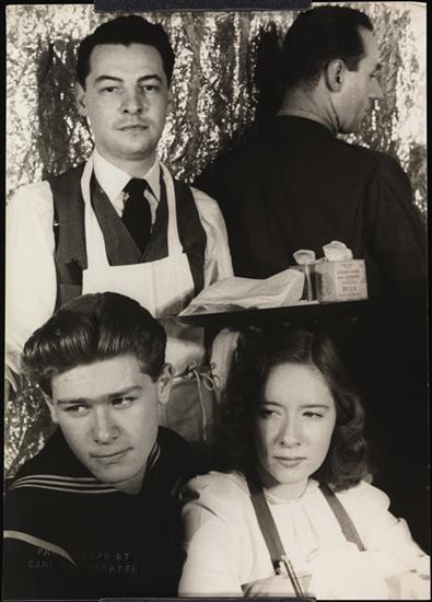 Junior Hostess Ruth Last, Busboy Saul Mourikes and U.S. Sailor Andy Mann (Stage Door Canteen).