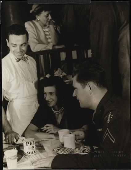 Jane White, Junior Hostess, Corporal William Roney and Busboy Robert Carleton (Stage Door Canteen).