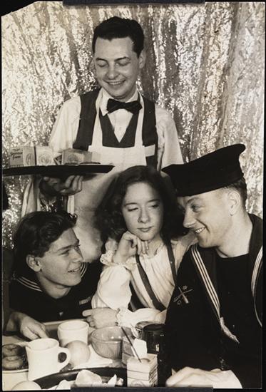 Junior Hostess Ruth Last, Busboy Saul Mourikes and U.S. Sailor Andy Mann (Stage Door Canteen).