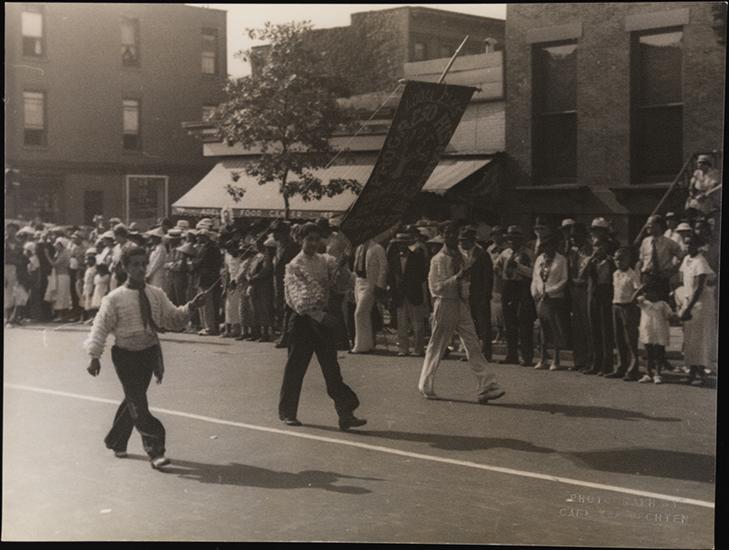 Embossed on recto: PHOTOGRAPH BY / CARL VAN VECHTEN; in ink, on verso: Negro Elks Parade / Brooklyn; stamped on verso: PHOTOGRAPH BY CARL VAN VECHTEN / CANNOT BE REPRODUCED WITHOUT PERMISSION / Date [