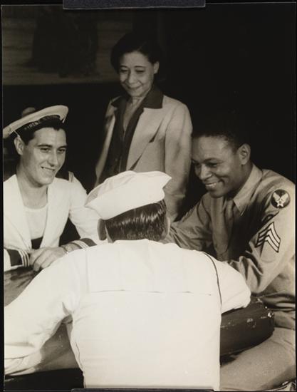 Busboy Phil Denman, Senior Hostess Co-chairman Osceola Archer, Junior Hostess Helene Tsang, U.S. Sailor Carl [...] and French Sailor Marcel Gouthier (Stage Door Canteen).