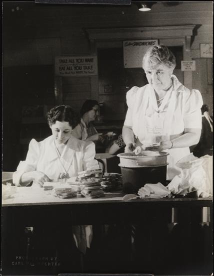 Kitchen Workers Betty Bernard, Mrs. Wormser and Mildred Wall (Stage Door Canteen).