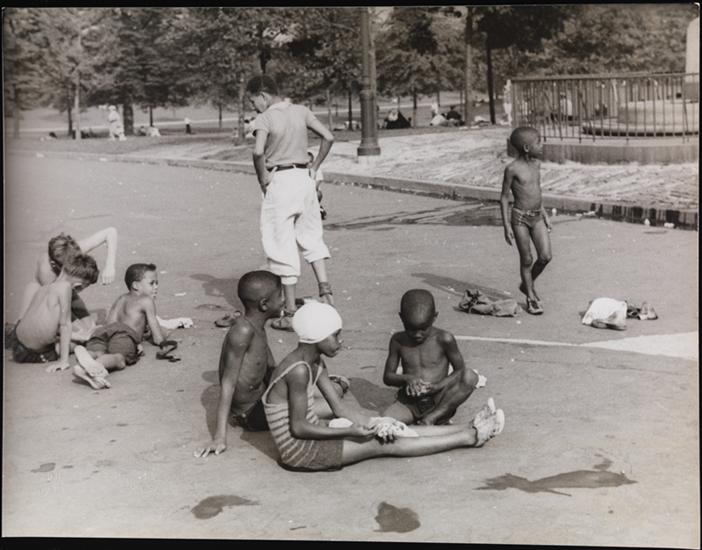 This boy is writing on the other boy's back with white chalk: "F... the cops."