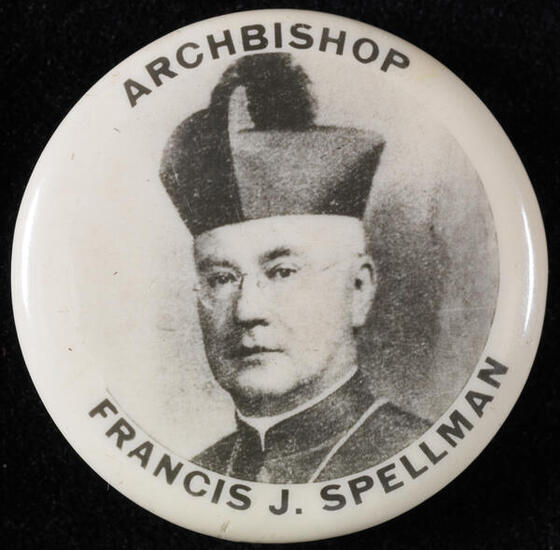 [Al Smith with Governor Lehman, Archbishop Spellman, Monsignor Lavelle, and Mayor LaGuardia.]