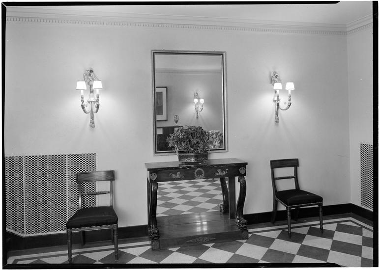 Bernard Benson [residence], 160 East 72nd Street, NYC. Chest and chair in entrance hall.