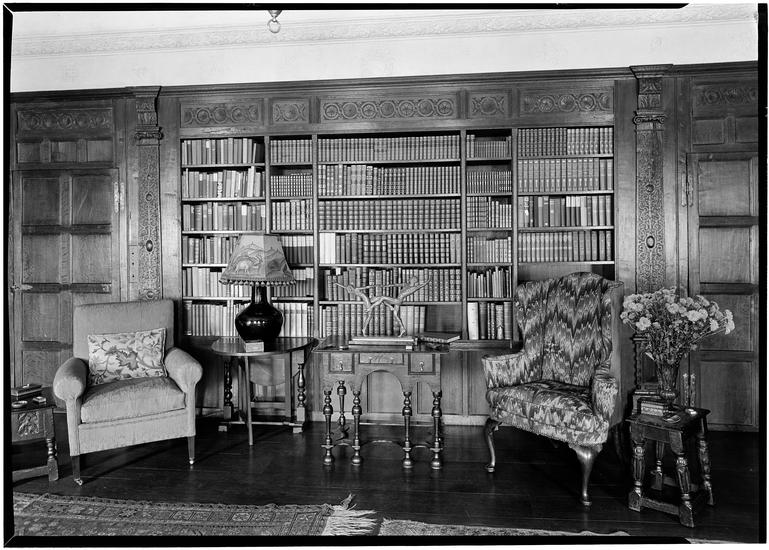 Harold C. Richard [residence]. Sharp view of library fireplace.