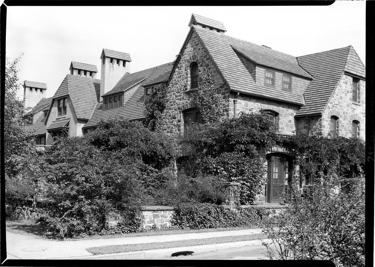 Forest Hills. Detail gate and bay window of Beech Knoll group.