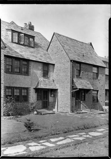 Forest Hills. Detail gate and bay window of Beech Knoll group.