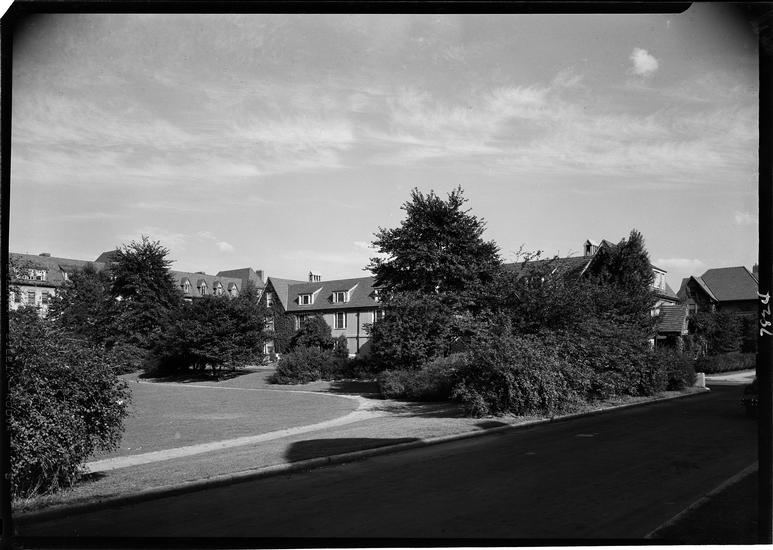 Forest Close, Forest Hills. Long Island for Cord Meyer Corp, general view of Martel St. group. Garage in foreground.