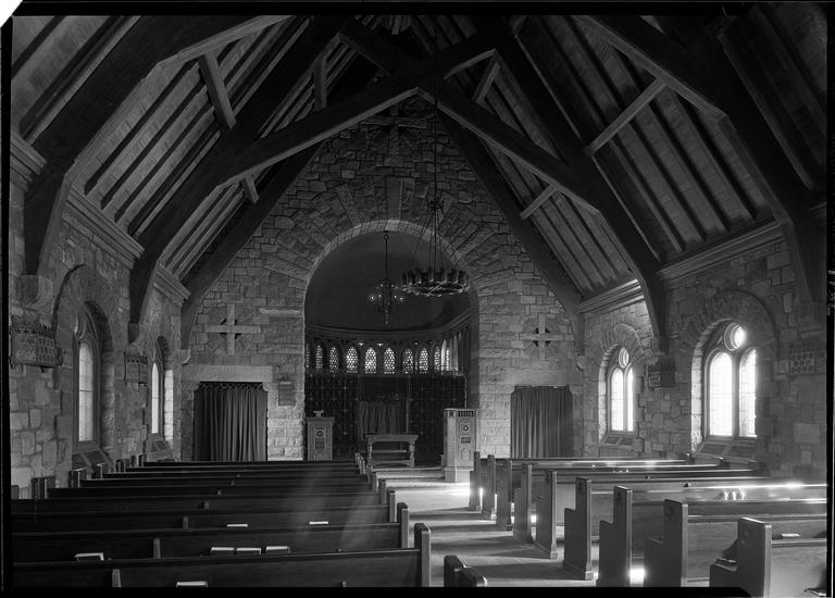 Forest Hills. Detail window and pulpit, Church in Gardens.