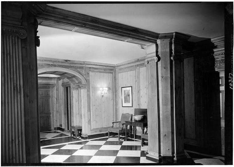 960 Fifth Avenue, NYC. Detail of settees and vista to secretary.