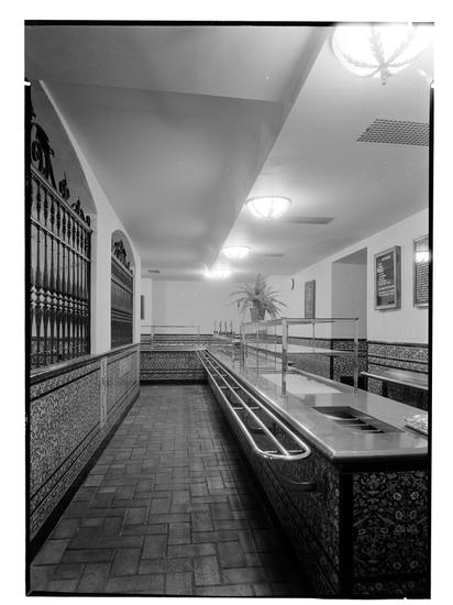 West side Y.M.C.A. Cafeteria door and vista to lobby.