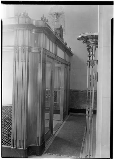 Baltimore & Ohio Railroad Station, Chanin Building. Detail of balcony toward settee.