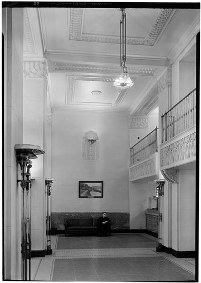 Baltimore & Ohio Railroad Station, Chanin Building. Detail of balcony toward stairway.