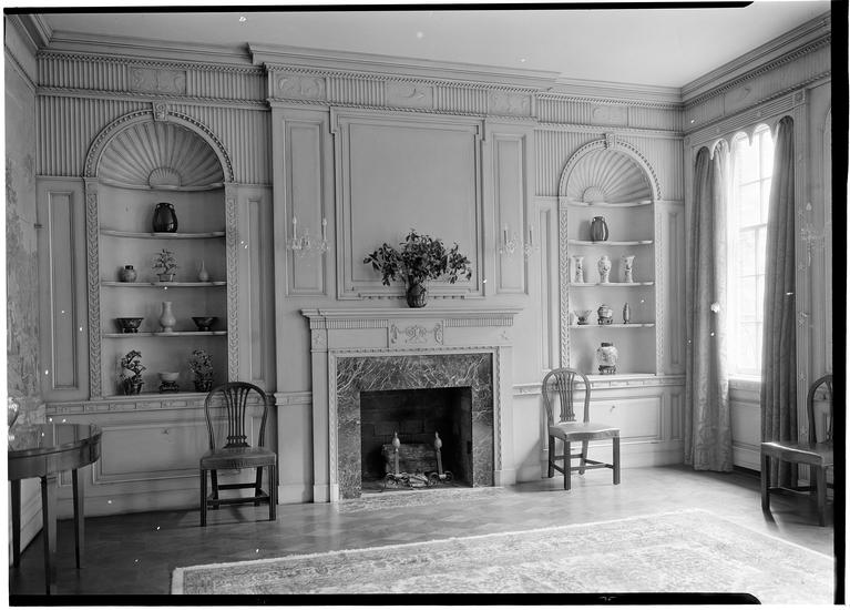Robert A. Lovett [residence]. Dining room detail of fireplace, sharp.