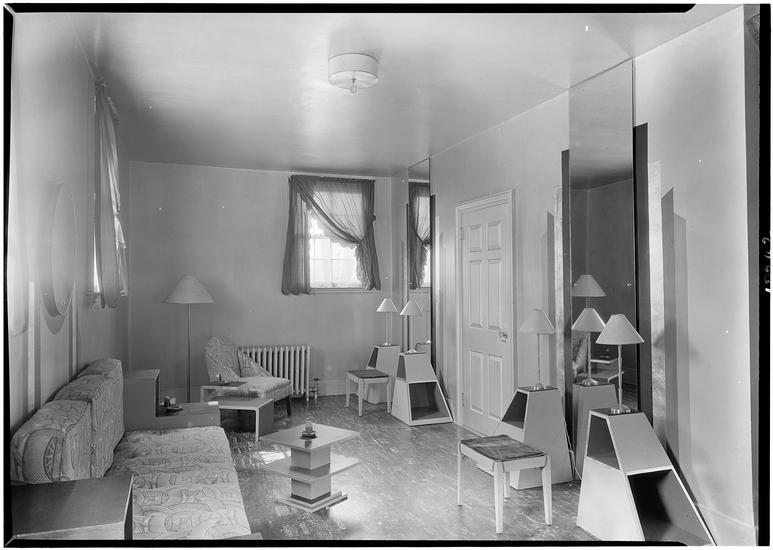 Livingston, model apartment. Continental Avenue, Forest Hills. Living room toward window.