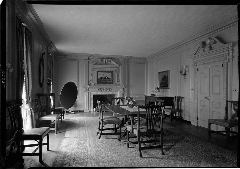 William Ziegler [residence]. Living room side view to [windows? and] fireplace.
