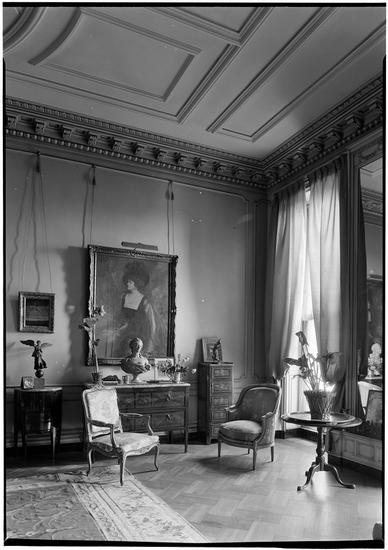 Thomas Cochrane [residence]. Table, lamp, chest and painting.