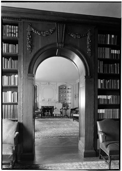 Richard F. Lawrence [residence]. Library toward foyer.