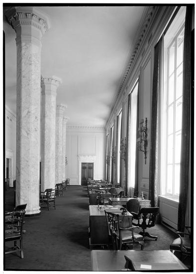 Bank of Manhattan Trust Co. Side view of north officer's room thru pillars.
