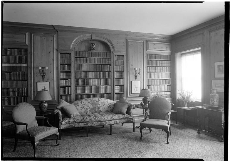 Cornelius N. Bliss [residence]. Library book shelves.