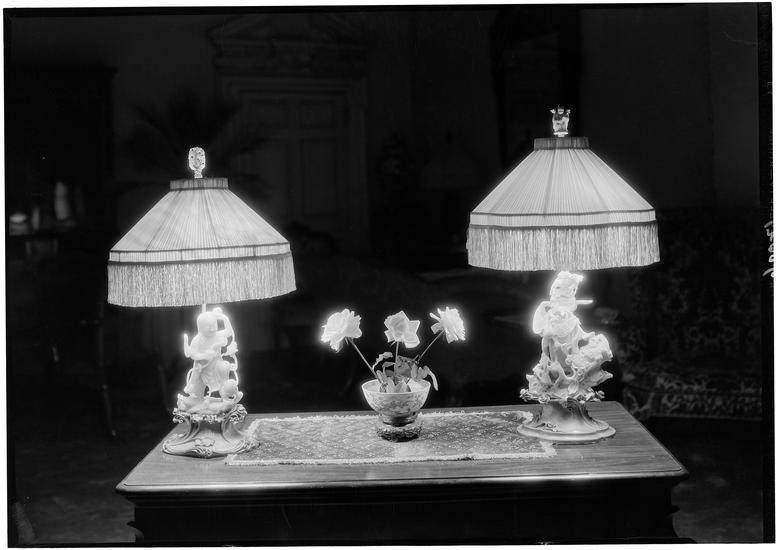 Edward I. Farmer [residence]. Cream colored vase lamp.