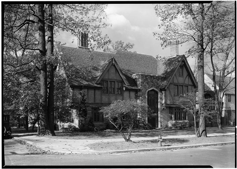 Dr. Edgar Sampson [residence]. Detail of tree and bay window.