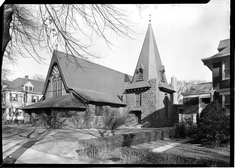 St. Matthews Episcopal Church. Detail of entrance and tower.
