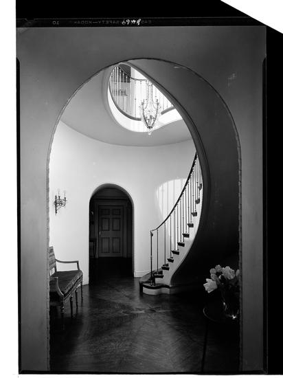 J.A. Reynolds [residence]. Stairhall toward entrance door.