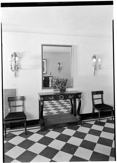Bernard Benson [residence], 160 East 72nd Street, NYC. Chest and chair in entrance hall.