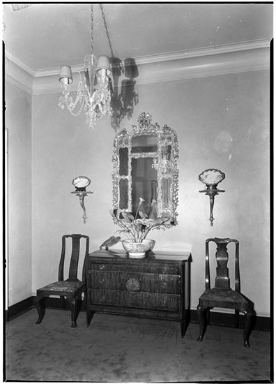Vincent Astor [residence]. Detail of table top and mirror.