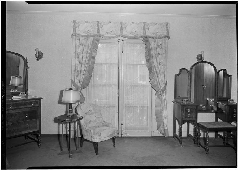Nicolas E. Bates [residence]. Guest room, window and dressing room.