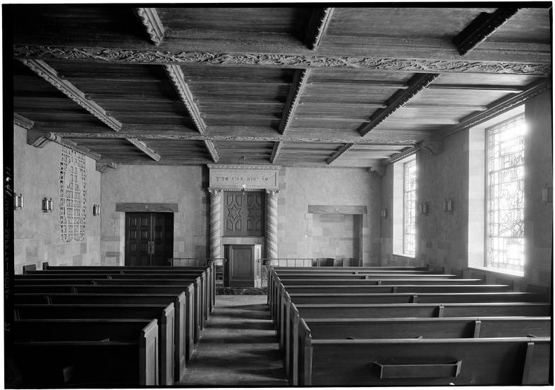 Beth Elohim Temple House. Horizontal detail auditorium toward doors.