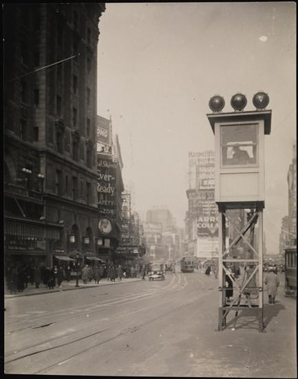 Broadway Series. View looking north from 44th Street (Times Square), where Broadway crosses 7th Avenue.