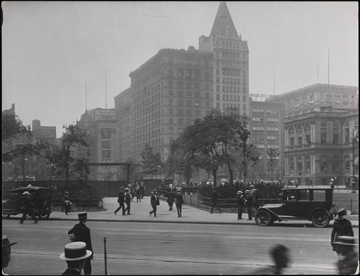 Broadway. View looking southeast across City Hall Park