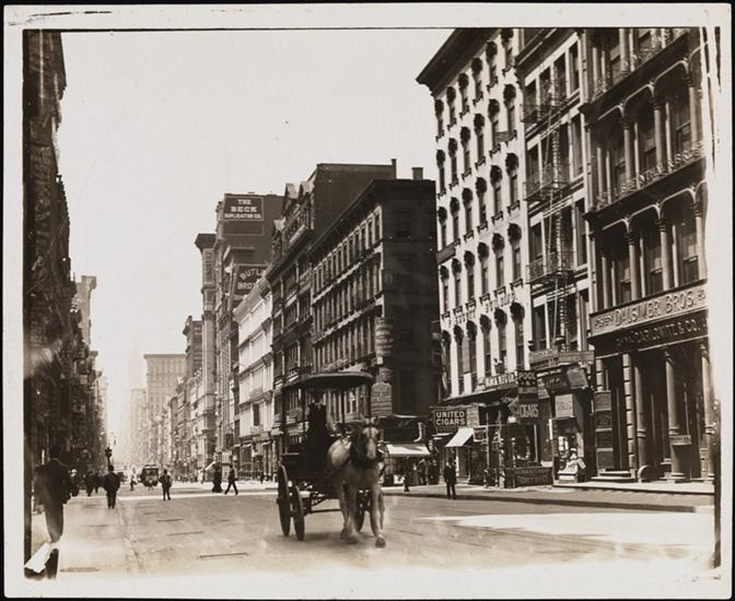 Broadway Series. West side of Bway looking north from Spring Street. Prescott Building on corner.