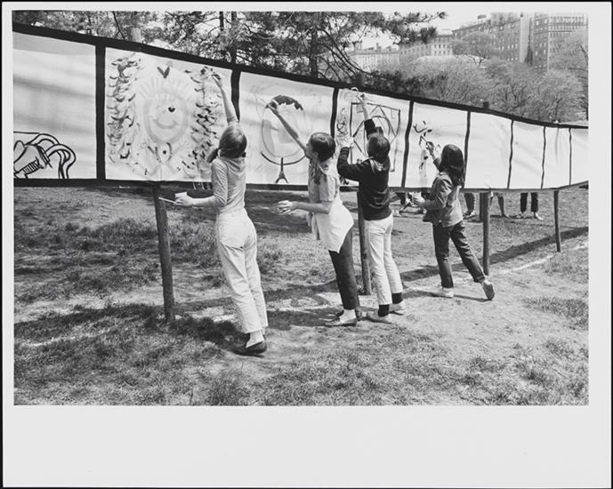 [Children feeding birds in Central Park.]