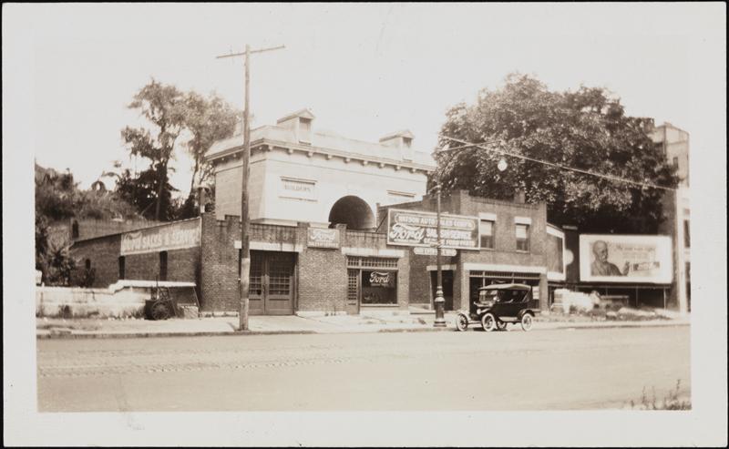 Broadway Series. View looking north from 215th Street. Garages at left. In the distance is the subway, where it leaves 10th Ave, elevated, and once more meets Broadway, to continue there on to 242nd S
