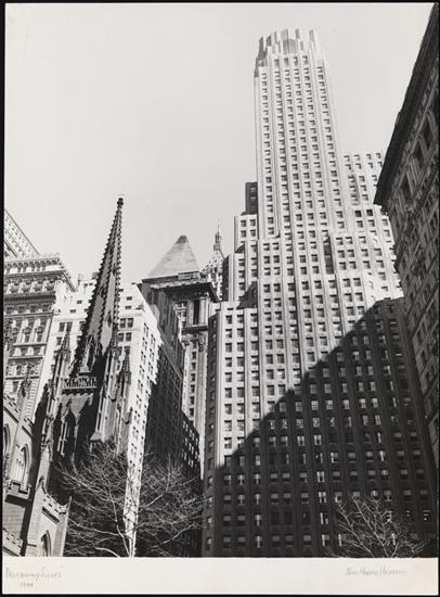 [Trinity Church opposite Wall Street, against Irving Trust Company Building.]