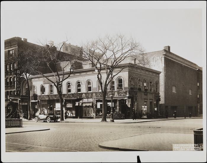 Broadway at the S.W. corner of 89th Street [storefront with milliners, cleaners, tailors, and the Adelphi Theater].