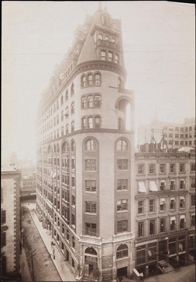 [Drexel Building, corner of Wall Street and Broad Street, built 1872, torn down in 1914.]