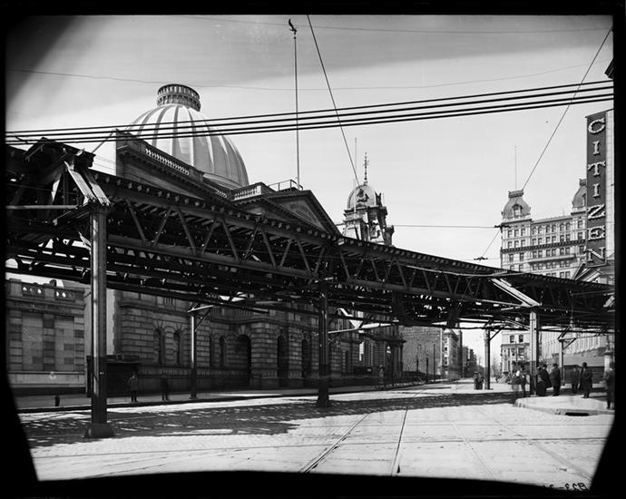 Brooklyn Borough Hall and Brooklyn El train tracks.