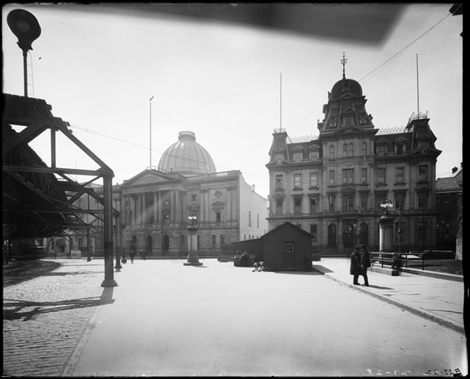 Brooklyn El tracks and county courthouse.