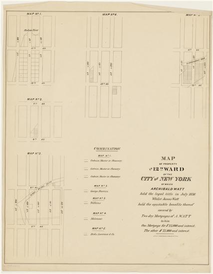 Map of Property in 12th Ward of City of New York of which Archibald Watt Held Legal Title in July 1838, Whilst James Watt held the Equitable Benefits Thereof Covered by Two Dry Mortgages of A. Watt to