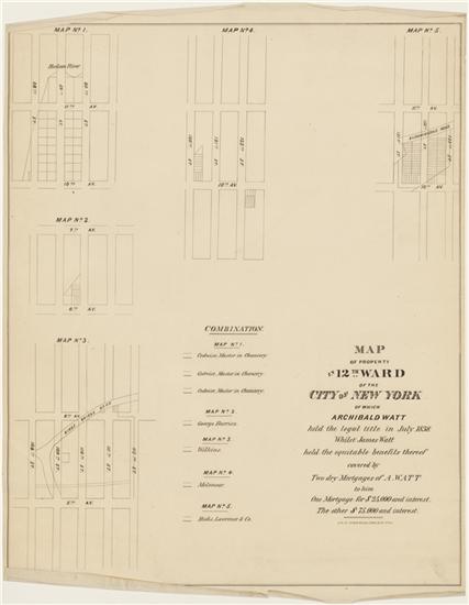 Map of Property in 12th Ward of City of New York of which Archibald Watt Held Legal Title in July 1838, Whilst James Watt held the Equitable Benefits Thereof Covered by Two Dry Mortgages of A. Watt to