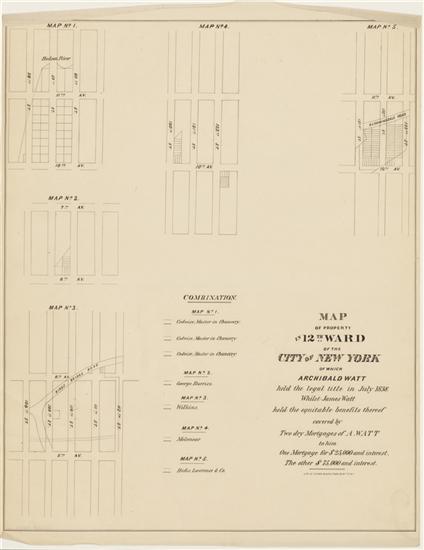 Map of Property in 12th Ward of City of New York of which Archibald Watt Held Legal Title in July 1838, Whilst James Watt held the Equitable Benefits Thereof Covered by Two Dry Mortgages of A. Watt to