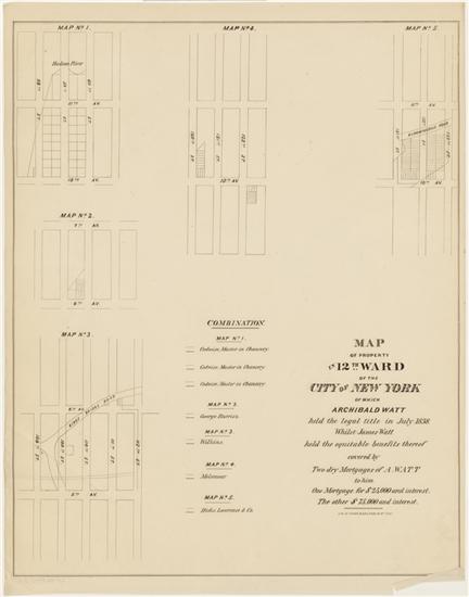 Map of Property in 12th Ward of City of New York of which Archibald Watt Held Legal Title in July 1838, Whilst James Watt held the Equitable Benefits Thereof Covered by Two Dry Mortgages of A. Watt to