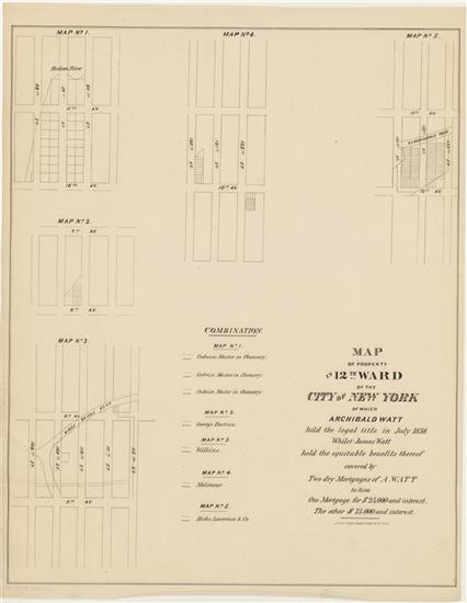 Map of Property in 12th Ward of City of New York of which Archibald Watt Held Legal Title in July 1838, Whilst James Watt held the Equitable Benefits Thereof Covered by Two Dry Mortgages of A. Watt to