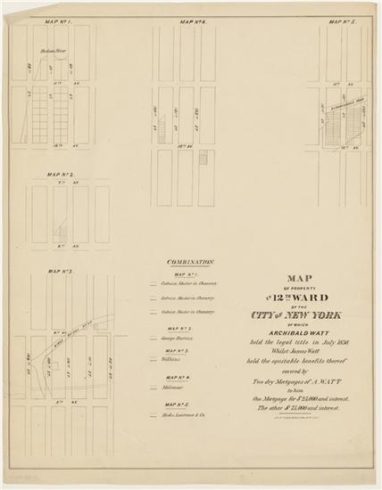 Map of Property in 12th Ward of City of New York of which Archibald Watt Held Legal Title in July 1838, Whilst James Watt held the Equitable Benefits Thereof Covered by Two Dry Mortgages of A. Watt to