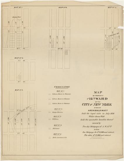 Map of Property in 12th Ward of City of New York of which Archibald Watt Held Legal Title in July 1838, Whilst James Watt held the Equitable Benefits Thereof Covered by Two Dry Mortgages of A. Watt to
